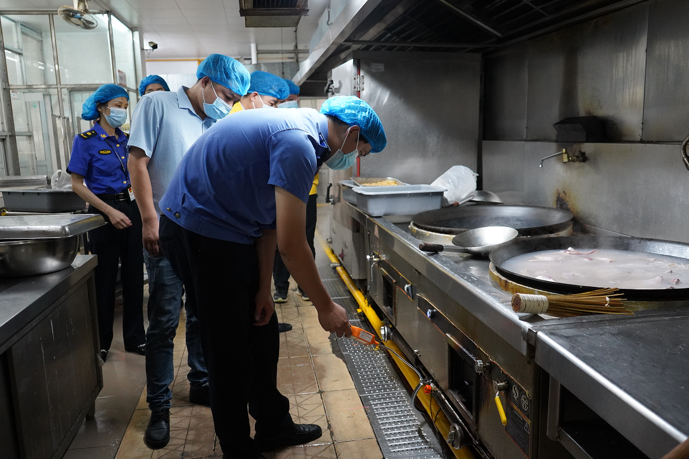 检查组先后前往四会中学(高中部)、华侨中学、实验中学等高考考点食堂的燃气设施,展开全方位、无死角的 “拉网式” 排查。检查人员手持专业检测设备,化身 “安全卫士”,对考点食堂燃气管道、阀门、燃气表具、燃气报警装置等设施设备进行 “地毯式” 排查。