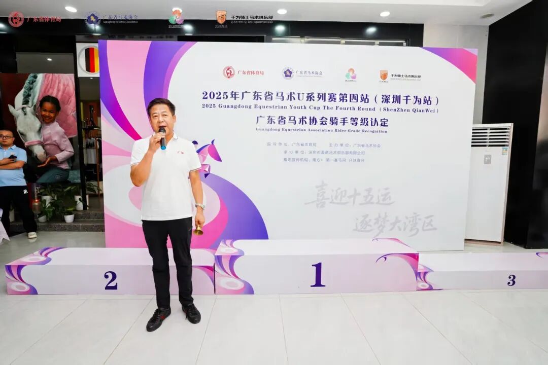 千为骑士国际马术俱乐部副总经理姚向阳代表俱乐部向远道而来的各位来宾、裁判员及参赛骑手表示衷心的感谢与诚挚的欢迎。邓志宏表示,希望各位参赛骑手在本次比赛中能够充分展现自己的实力与风采,赛出水平,取得优异的成绩。他同时强调,俱乐部将全力为比赛提供专业的服务与保障,确保比赛顺利进行。