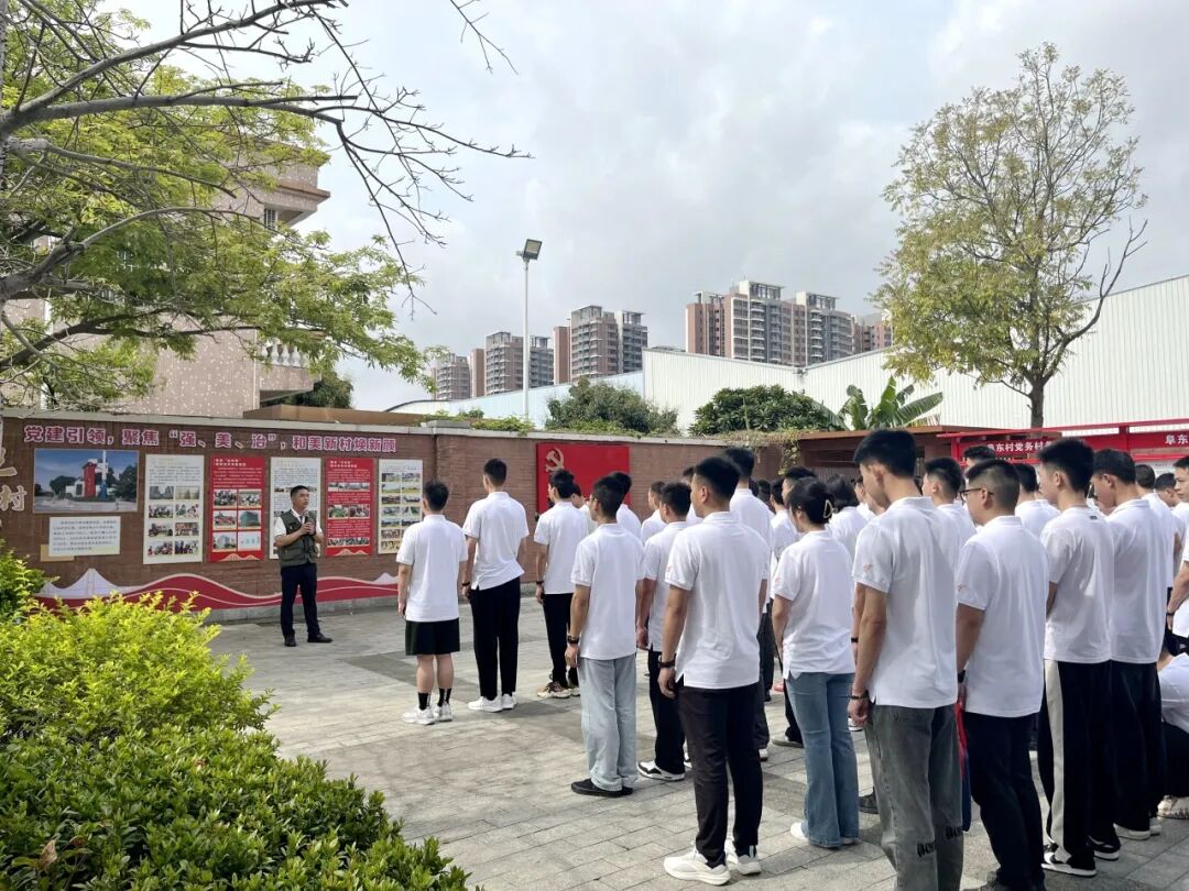 为在乡村全面振兴与城乡融合发展贡献退役军人力量,4月17日,中山市退役军人事务局、中山职业技术学院组织中山市2025年春季退役士兵到阜沙镇阜东村开展“百千万工程”交流学习活动,实地感受“百千万工程”典型示范村的建设成效,激发退役军人投身“百千万工程”的使命感与责任感。阜东村党总支书记、全国模范退役军人周兆章,镇退役军人服务中心负责人以及100多名春季退役士兵参加交流学习活动。