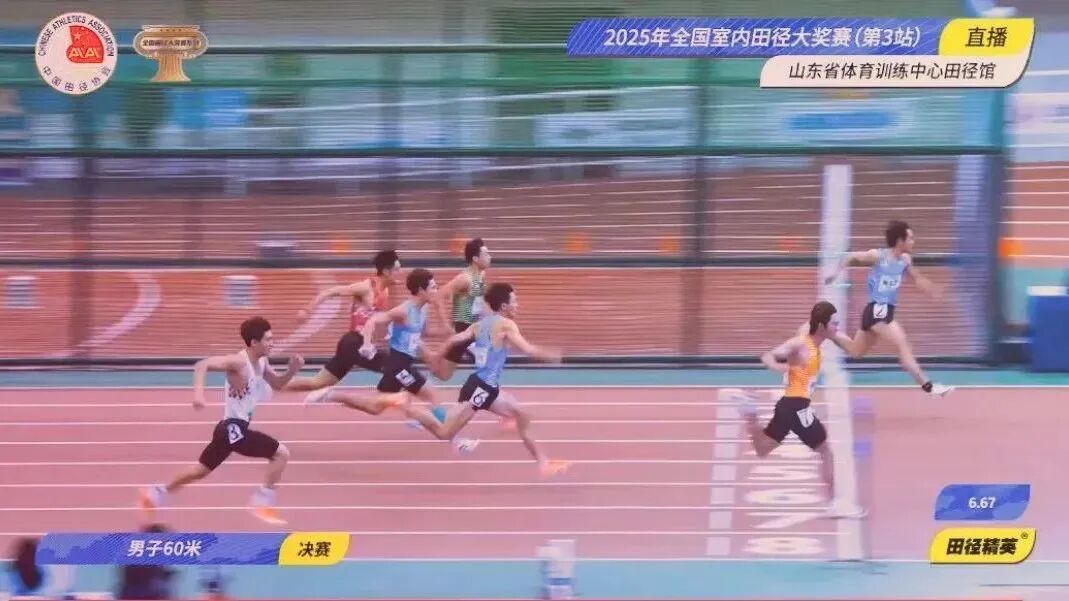 5、2025年2月18日,在2025年全国室内田径大奖赛(第3站)男子60米决赛中, “清远飞人”陈国臣则以6.67秒的惊艳表现力压多位名将夺得亚军,成为本站黑马。