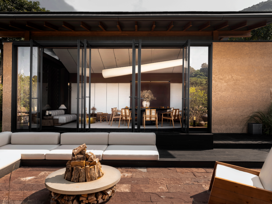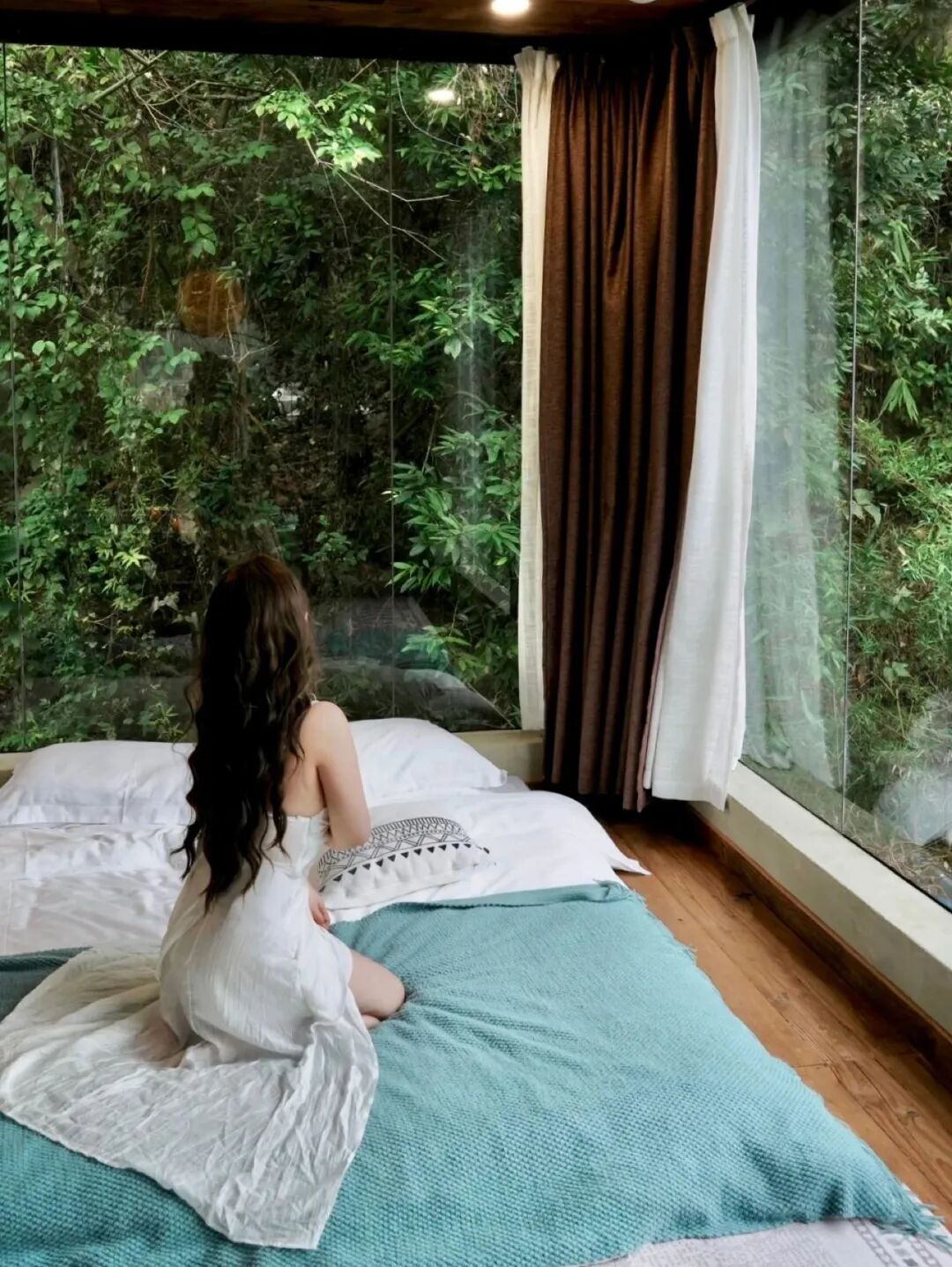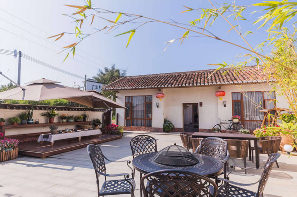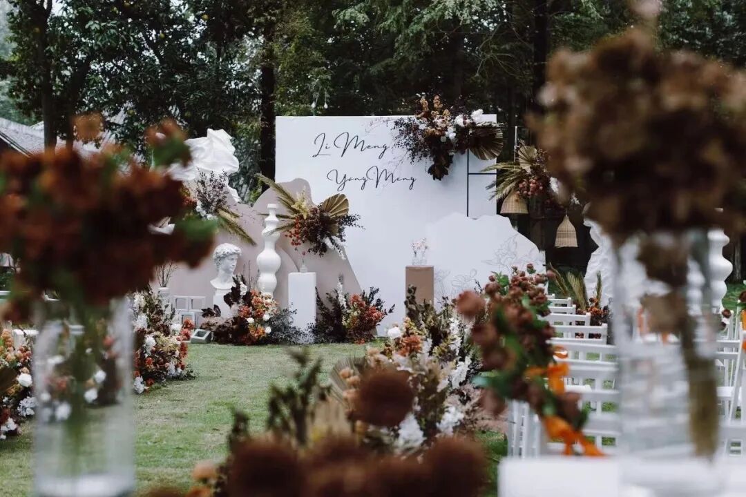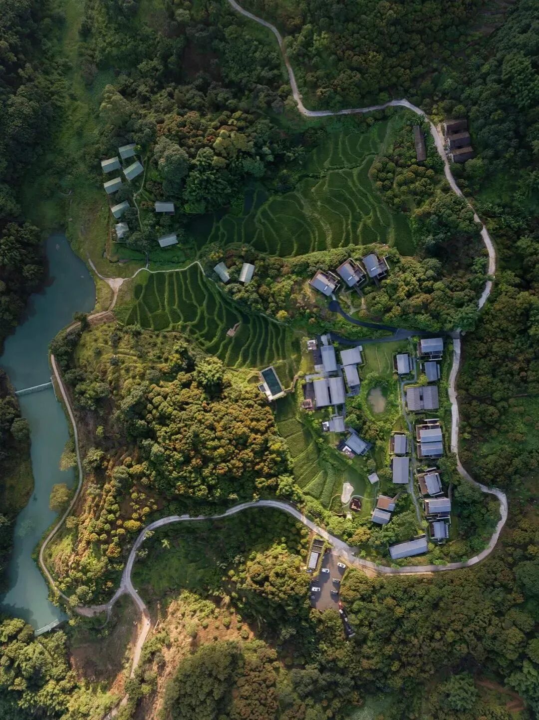 ·特色:占地面积约为5856平方米,拥有约300平方米的礼堂及无边泳池。自然与建筑的诗意交融,场地被树林环绕,门前溪流潺潺,四季风景如画--春有紫藤,夏有萤火虫与荔枝龙眼,秋可赏月摘柿,冬享温泉暖意,为婚礼提供动态的自然布景。