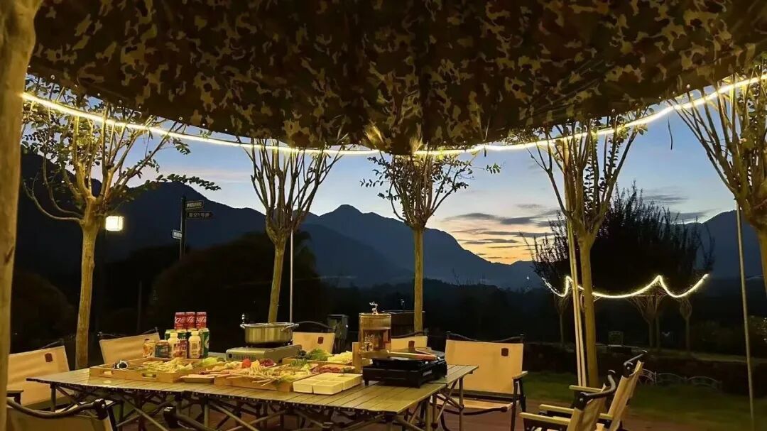 ·设施:配备2500平花园,婚礼草坪、婚礼灯饰、帐篷等露营设备,露天投影及露天温泉。