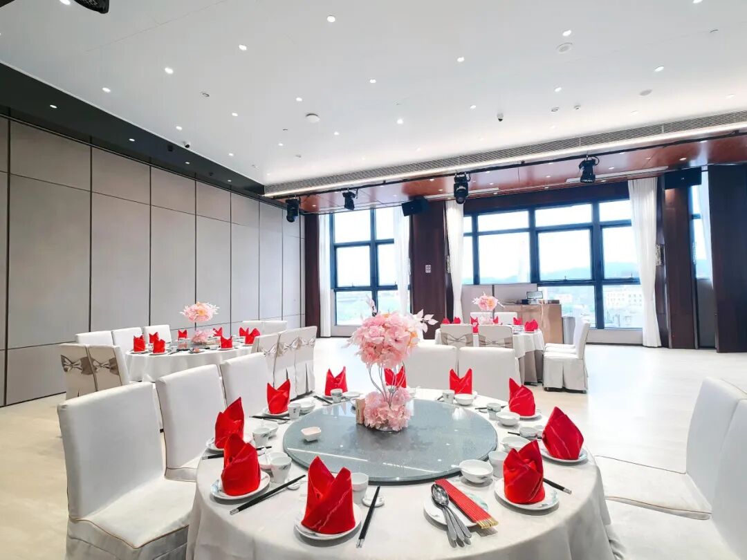 ·宴会厅:350㎡的珑泉宴会厅,可筵开28席,配备高清LED屏幕、音响等设备。