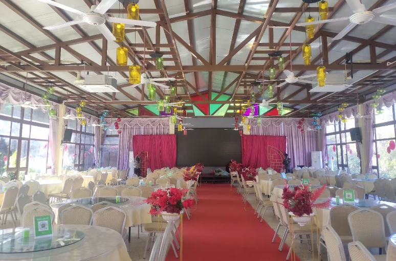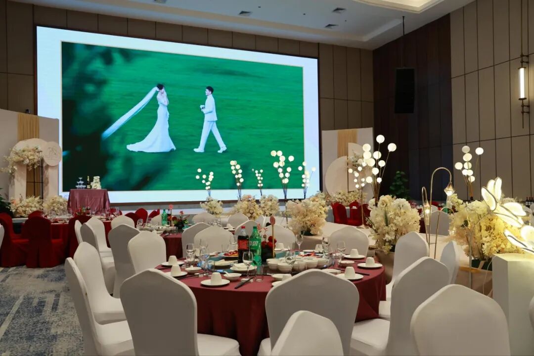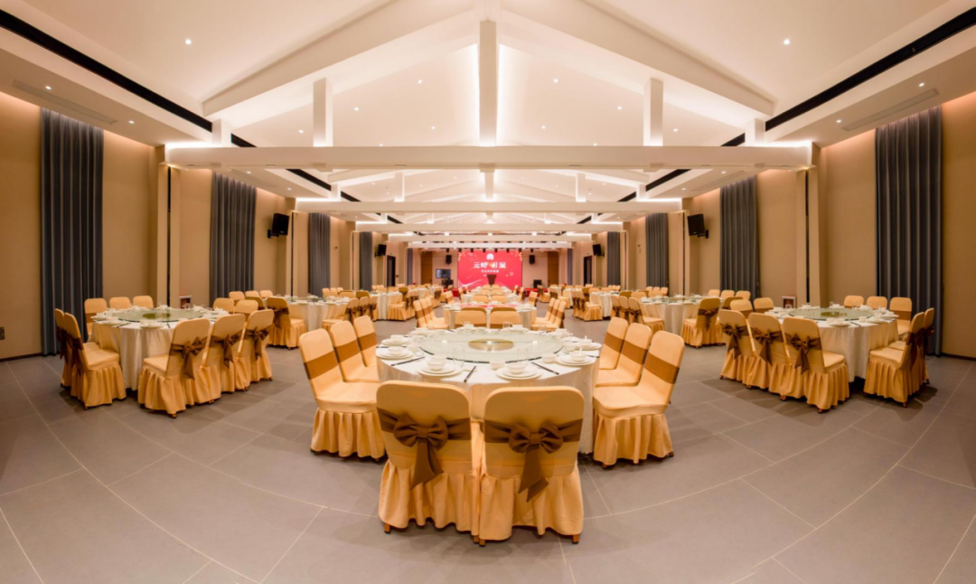 ·宴会厅:全厅无柱,面积270㎡,可筵开17席,配备高清LED屏幕及音响灯光设备。