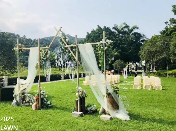 ·风格:在宽敞的草坪上,举办浪漫而难忘的婚礼,在宁静的环境中策划一场充满惊喜的求婚仪式、热闹非凡的生日派对、充满仪式感的毕业典礼或创意无限的团建活动,宽敞的空间,在自然的氛围中愉悦身心。
