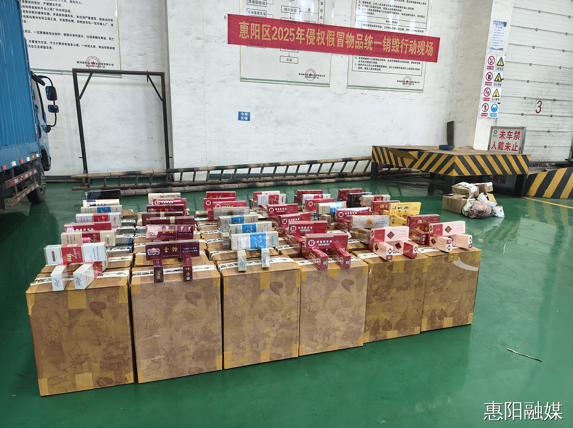 2025年侵权假冒伪劣商品全国统一销毁行动于6月10日举行,惠阳区同步在榄子垅环境园开展集中销毁活动,货值1250万元侵权假冒伪劣罚没物品被销毁。