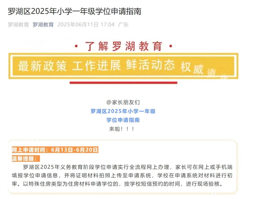 罗湖区教育局官微发布
