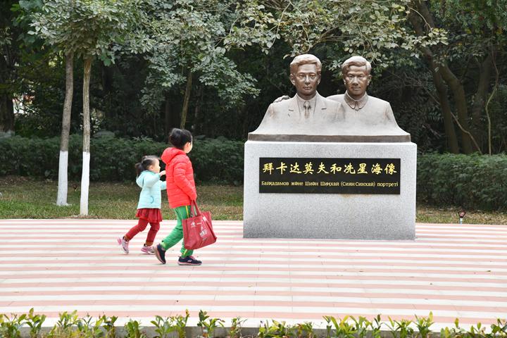冼星海与拜卡达莫夫友谊之路上的雕塑