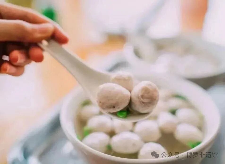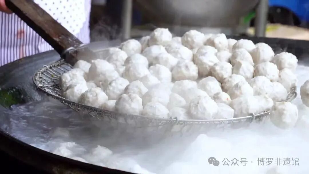麻陂肉丸,百年传承(民国李珠安创)。手工捶制+秘方佐料(白胡椒、鱼粉等),成就爽滑鲜美之绝味。既可入汤佐面,亦可热炒飘香。远销港澳等地,为博罗特色非遗名片。