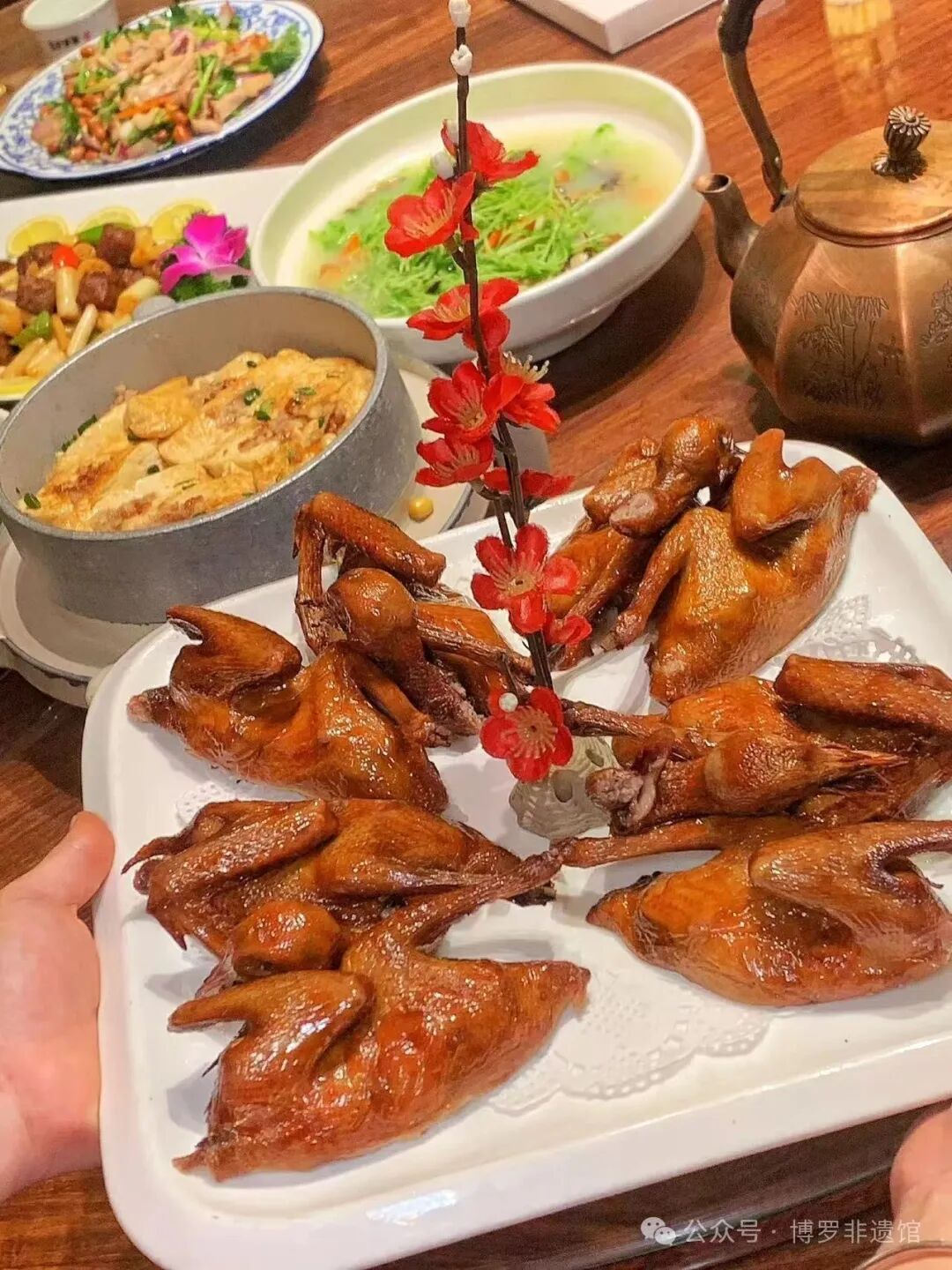 博罗乳鸽承袭明清岭南精髓,经龙溪谢记得隆改良。以“卤水锁香+油控锁汁”双轨工艺,成就琥珀脆皮、爆汁嫩肉之极品。强筋健骨,从粤菜名品跃升为非遗活态传承与乡村振兴典范。