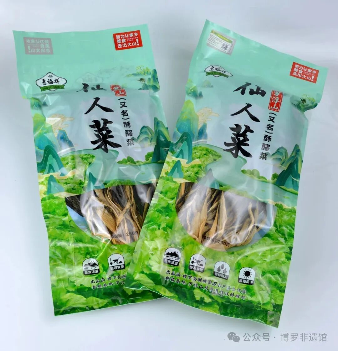 罗浮山酥醪菜产自博罗县酥醪村,该菜以罗浮山特有野芥菜为原料,仅限本土种植以保持风味,曾获昆明世园会铜奖,并被选为对外赠礼,彰显“健康无价”的文化内涵。