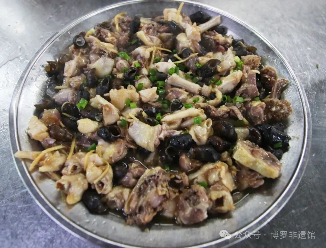 博罗客家盐焗鸡,非遗技艺四代传承(1921年始)。严选160天散养三黄鸡,古法盐焗(自配粉腌、柔力裹纸、文火焗45分钟),成就皮脆骨软、咸香紧致之极品。宴席必备“无鸡不成宴”,承载客家食俗,为活态传承典范。