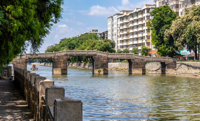 这座始建于清道光十一年(1831年)的五孔石梁桥,全长68米,宽3.8米,桥身由六个精工打造的石墩支撑,桥面两侧石栏相护,在清朝时是附近居民的交通要道,至今仍为两岸居民提供着通行便利。1983年和2002年先后被列为广州市和广东省文物保护单位。