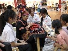 瑶族刺绣国家级非遗传承人邓菊花正指导大家学习钩针技巧。
