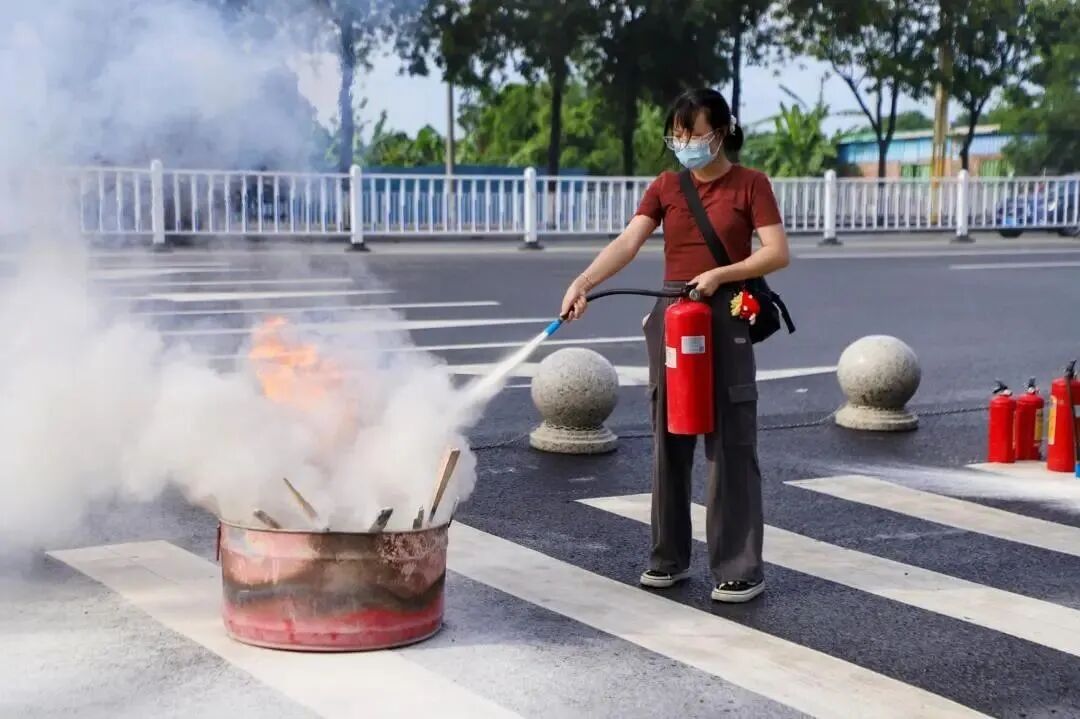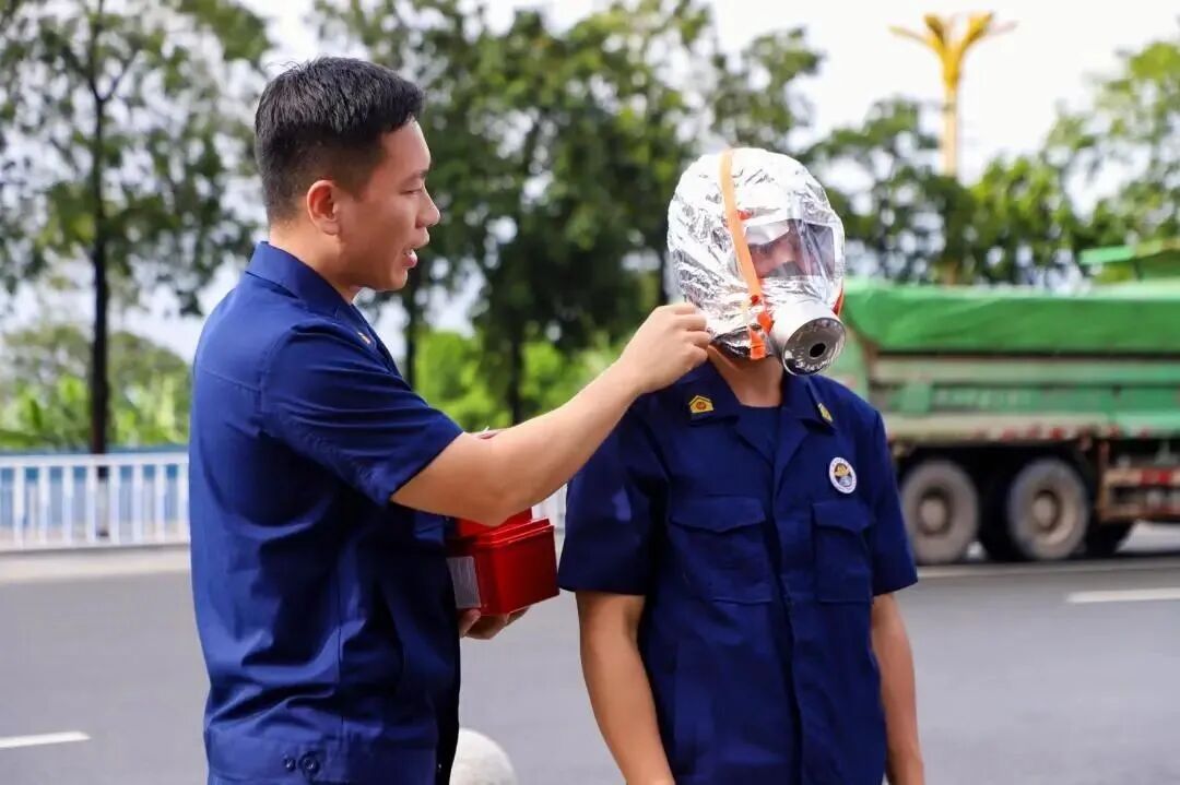 在实战演练环节,消防员“手把手”教学消防逃生面具、灭火器的使用等技能。参训人员亲身实践,轮流体验灭火器的"提、拔、握、压"四步法,实现理论知识向实战能力转化,让消防安全技能真正入脑、上手、管用。
