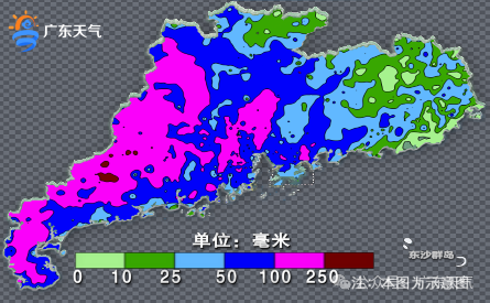 (据气象水文监测,6月12日20时到15日08时,全省平均雨量71.7毫米,有16个镇街录得超过250毫米的累积雨量,有576个镇街录得100毫米~250毫米的累积雨量,有528个镇街录得50毫米~100毫米的累积雨量,茂名信宜市大成镇录得全省最大累积雨量399.7毫米和最大24小时雨量373.8毫米。)