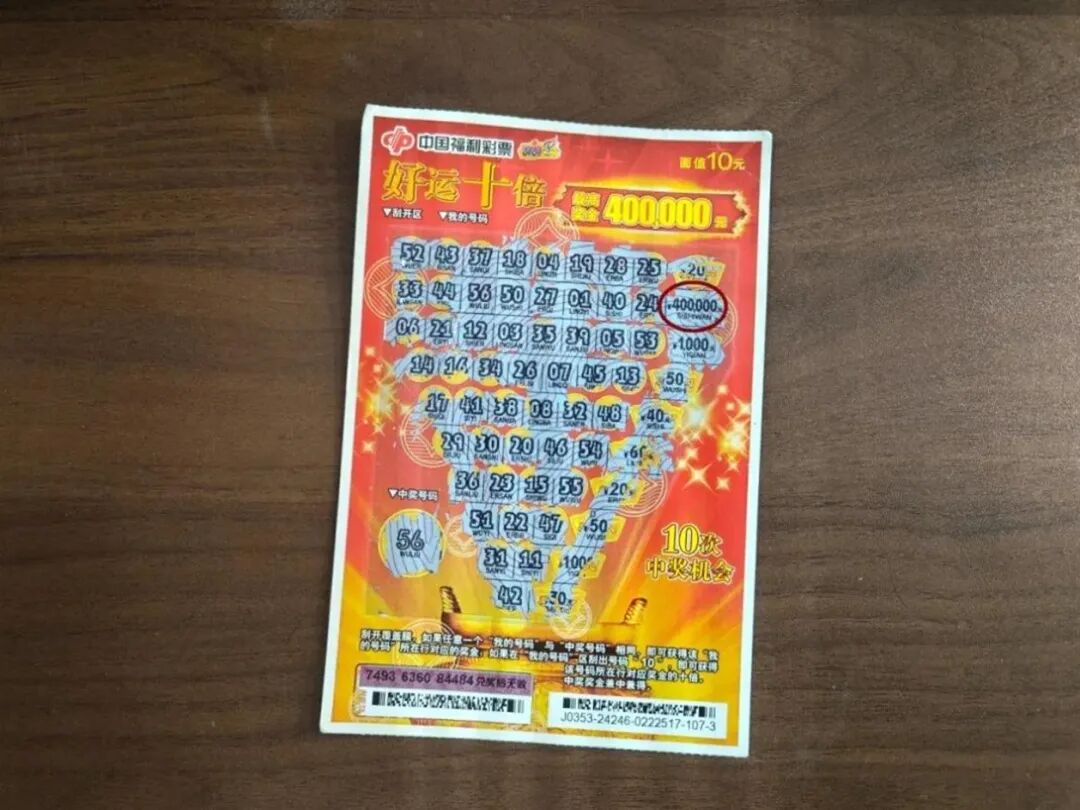 拿出一张“好运十倍”彩票