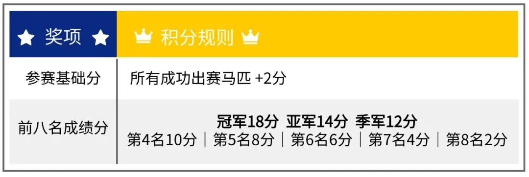 所有积分将累计至9月举行的蒙古马速度赛马大奖赛。届时,各盟市代表队将根据积分排名争夺14个参赛资格,向最终大奖发起挑战!每场公开赛和常规赛的表现都将影响各地区荣誉归属和最终奖项的角逐!