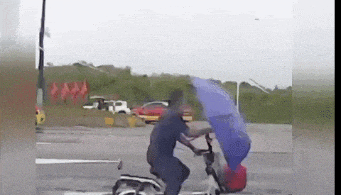 撑伞骑行到底有多危险!