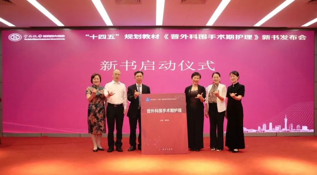 由我院胃外科学科带头人彭俊生教授担任主编,乳腺外科主任李海燕主任医师和护理部主任叶新梅主任护师参与编写的国家卫生健康委员会“十四五”规划研究生教材《普外科围手术期护理》,由科学出版社正式出版发行。今日上午,新书发布会在我院举行,中山大学护理学院院长张俊娥、我院院长吴小剑、副院长邓艳红和各附属医院的护理同仁共同出席,见证这一重要时刻。
