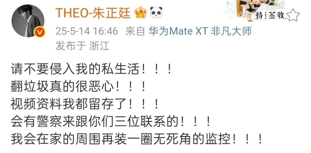 他还称经常有“私生粉”在家门口晃悠,自己为此不止一次搬家。“之前刚搬完新家就有人来,这次新房子刚弄好又来!”他在评论区呼吁:别再做这种丢人还会给别人造成困扰的事了!