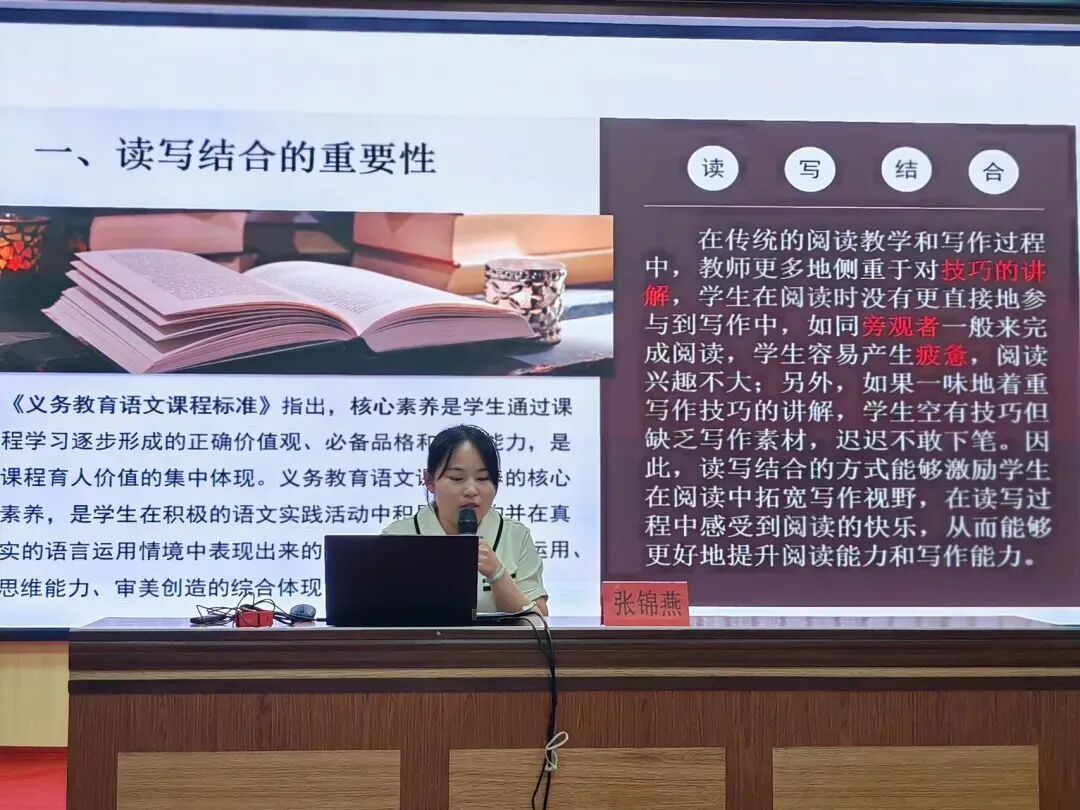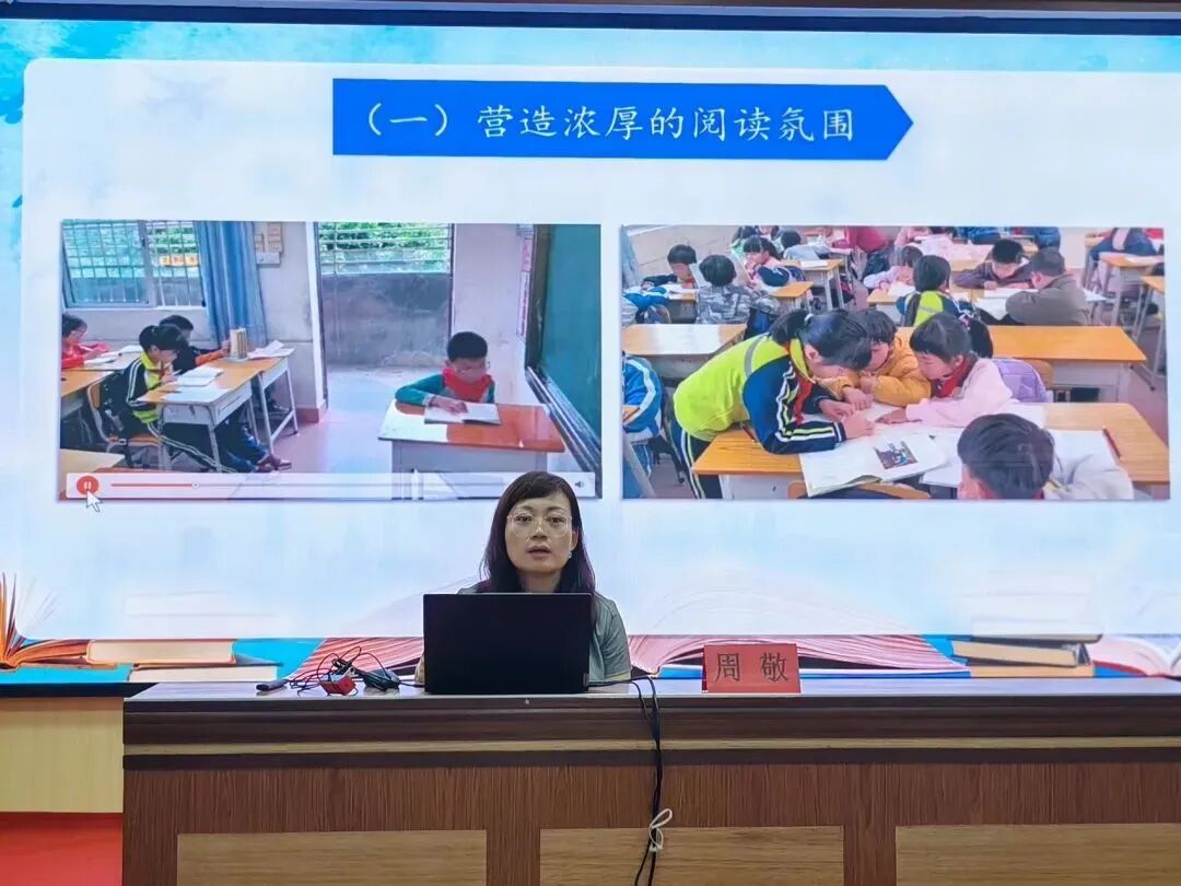 在教学分享环节,思维的火花不断迸发。福南小学副校长周敬在题为《激发阅读兴趣,滋养心灵成长》的讲座中,详细阐释了教育部青少年读书行动的要求,并结合福南小学的“师生共读”等特色活动,深入探讨了“兴趣唤醒—习惯养成—素养提升”的培养模型。张锦燕老师在《读写结合:核心素养培养的破局之道》中,通过课内外结合及课前展示,介绍了每日三读的实践方法,并探讨了如何营造书香校园,快乐阅读,打造具有特色的校本读书活动,为教师们提供了切实可行的方法。