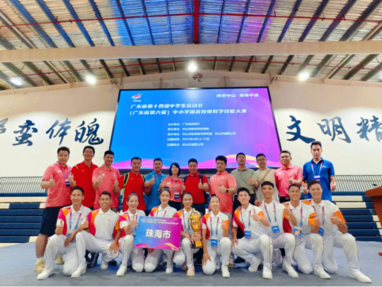 2025年6月17日,在中山市举行的广东省第十四届中学生运动会、广东省第六届中小学体育教师教学技能大赛圆满结束。珠海体育教师代表队在全省21个地市210名体育精英代表的激烈角逐中脱颖而出,一举夺得团体总分一等奖(全省第三名)的历史好成绩!更令人振奋的是,珠海教师在单项比拼中,勇夺4个组别比赛项目的全省第一名,用过硬的专业素养完美诠释了珠海体育教师的教学风采。