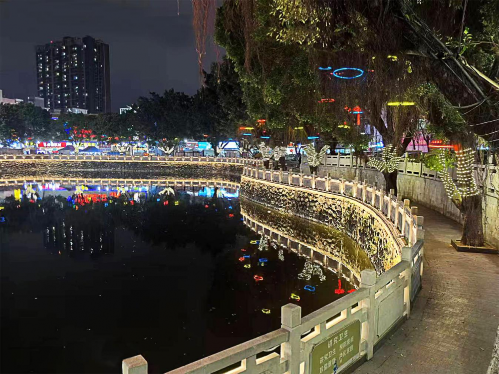 通过灯光亮化工程美化后,龙美村的夜晚流光溢彩,与夜市摊档点点灯火交相辉映,烧烤香气弥漫,特色小吃叫卖声此起彼伏。