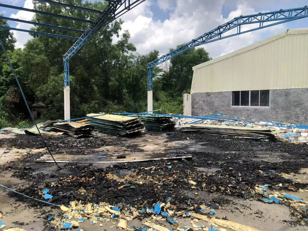 火灾导致厂房内建筑结构及泡棉烧损