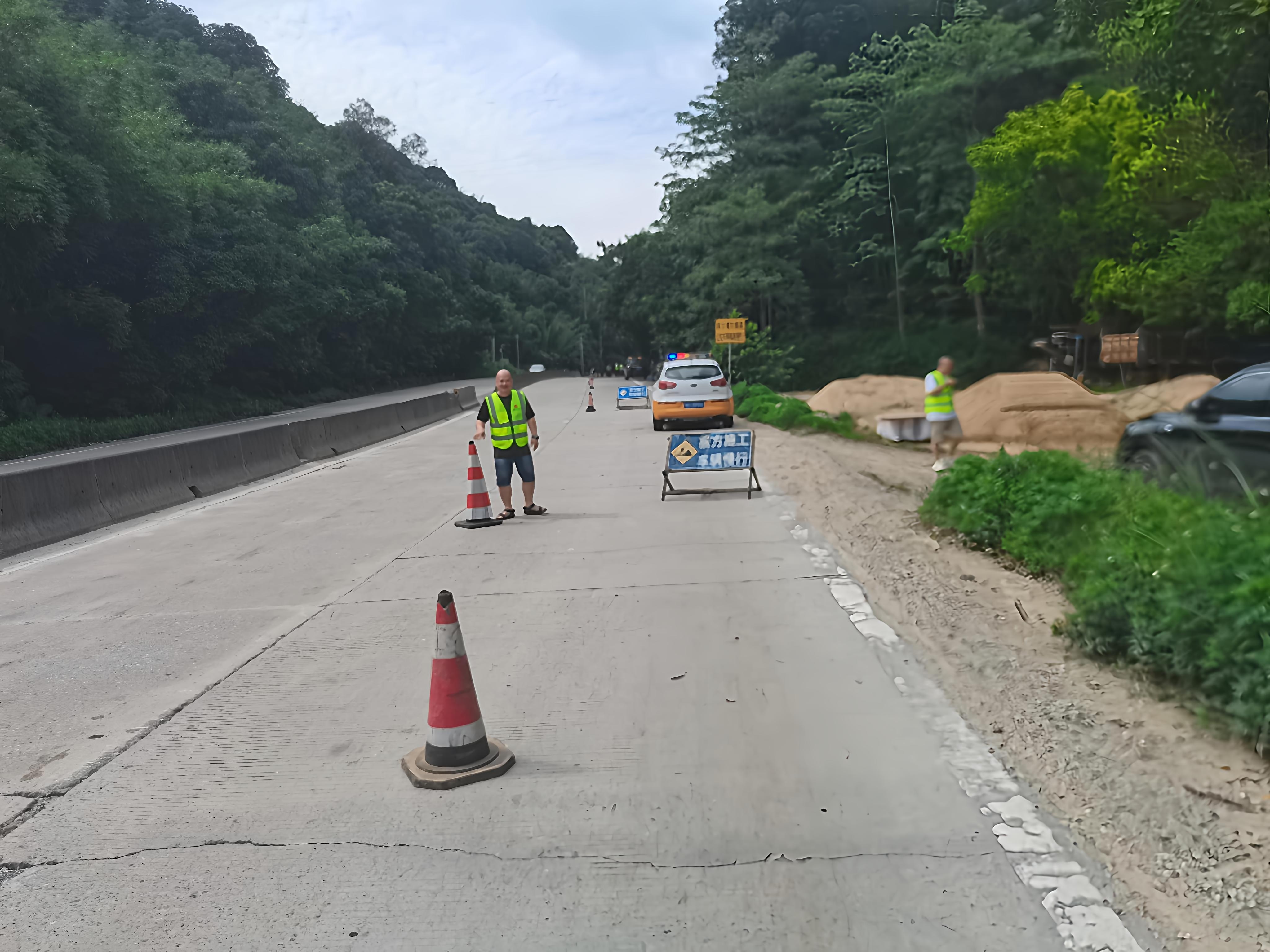 抢险队伍抵达现场后,按照既定预案分工协作、迅速行动,在周边关键位置规范摆放安全警示标志,同时对塌方路段实施临时交通封闭。为最大限度减少对交通的影响,现场模拟利用对向车道设置双向行车通道,路政人员全力维护交通秩序,耐心疏导过往车流,确保周边道路通行安全有序。