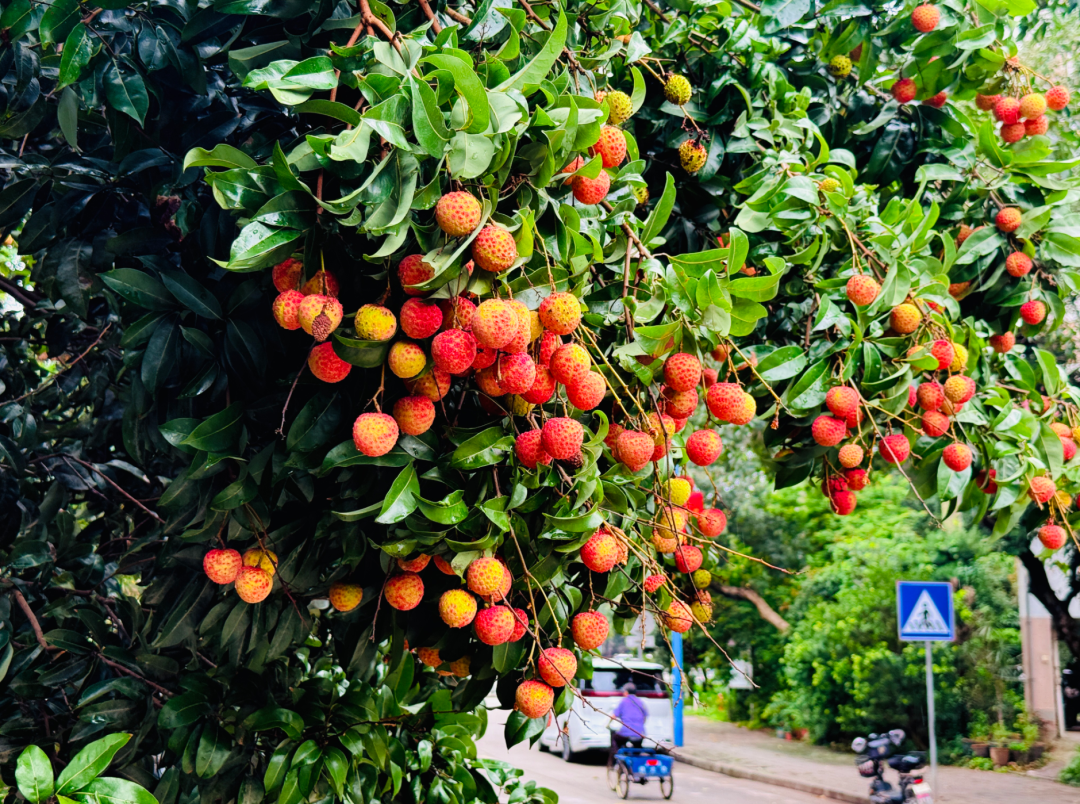 对番禺人来说,荔枝树是刻进DNA的生活符号、是味蕾的记忆,是寻常日子里的甜蜜点缀。漫步于番禺的街头巷尾、乡间村落,总能在不经意间,于某家小院的角落、某户人家的门前、甚至是某个老式居民楼的阳台上,邂逅那么一两株亭亭如盖、挂满红果的荔枝树。