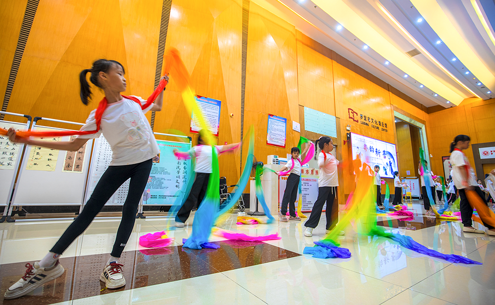 “粤韵新蕾”学堂是罗定市新时代文明实践中心聚焦群众精神文化需求与便民服务期待,通过社会化运营,整合资源,创新打造的一个公益课堂。第一期课程从2025年2月开始,共吸引了7—15岁共60余名青少年参加,第二期课程将于近期开课。“以前我只在电视里看过粤剧,觉得离自己很远,现在希望每周五都可以过来上课,老师教我们‘长绸’的动作,我们现在在排练《彩云追月》的节目,节目将会在月底呈现。”学生刘芷绎表示。