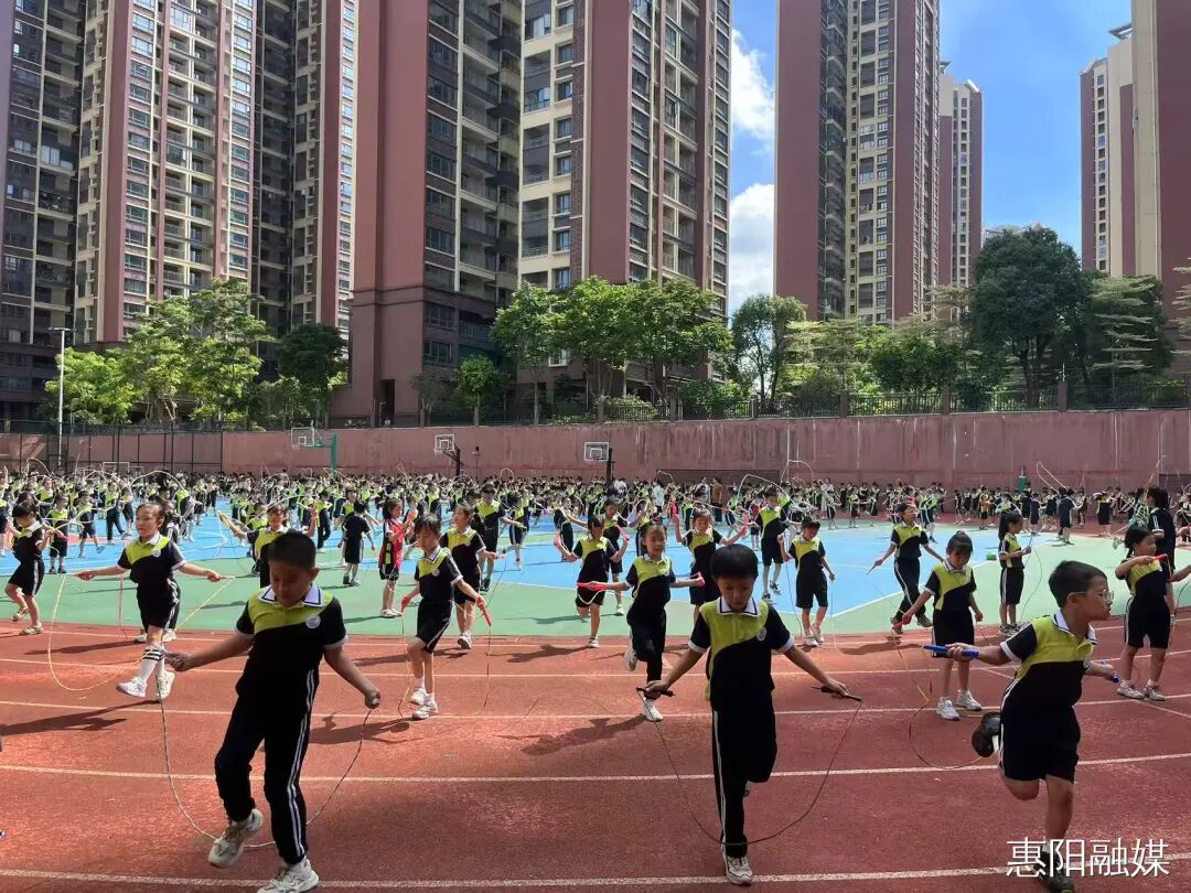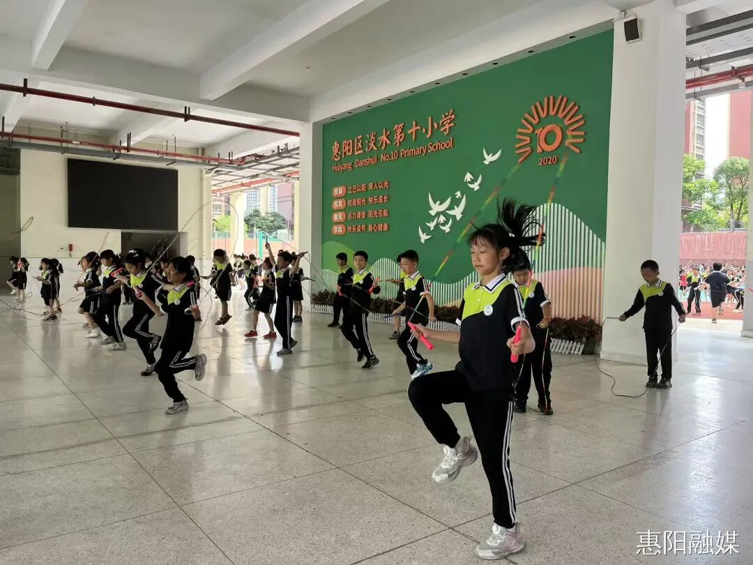 单摇、双摇、交叉轮换跳、合作跳……在淡水第十小学,当大课间的铃声响起,操场便瞬间成为一片绳影交织的海洋。孩子们手中的跳绳翻飞如蝶,双脚轻快跃动,笑容如阳光般在脸颊上跳跃。这一片充满生命力的律动,正是学校扎实落实“每天校园体育2小时”的成果。