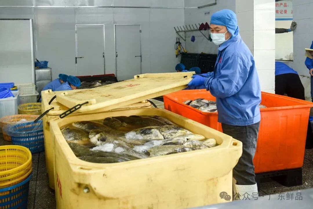 经过放血的鮸鱼,被装入保温箱子。