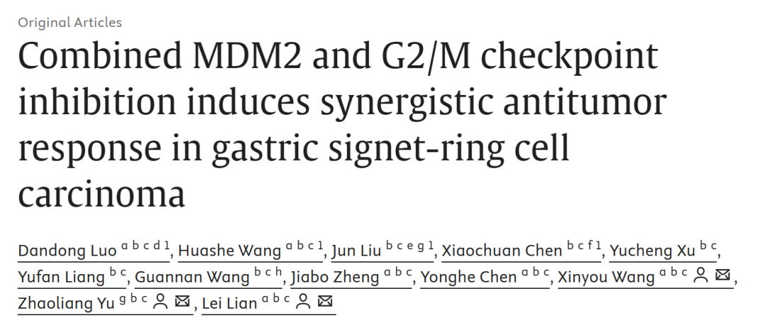 综上所述,研究团队发现MDM2高扩增是胃印戒细胞癌的特征之一,阐明了MDM2抑制剂与G2/M检查点联合使用的抗肿瘤效应,并最终提出了使用MDM2和G2/M检查点抑制剂组合使用在胃印戒细胞癌中的治疗策略。