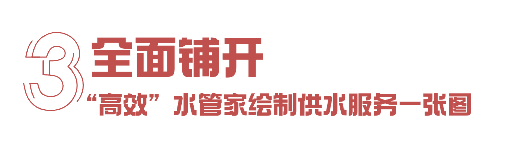 在服务模式上,公司党委创新引入供水服务“党建+服务”地图概念,横向展示网格分布,纵向理清管理链条,开展“党员干部带头服务、带头解决问题”“促进服务提升,促进管理提效”的“双带双促”活动,利用星级水管家“人熟、地熟、情况熟”的优势,摸准用户需求、靶向精准施策,通过代办、领办、协办、现场办等工作模式,缩短居民的办事周期,构建高效服务体系。