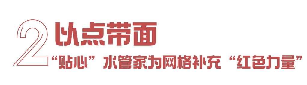 公司党委以“星级水管家”打造为契机,联动街道、社区、物业等多方,构建“划片管理、网格服务、定点管控、责任到人”的管理服务模式,形成“小网格大统筹”服务体系。创新推出水电气网市政设施“六联办”服务,将“水电”建设纳入“一张蓝图”。推动跨部门、跨层级、跨区域信息共享,探索“政-企-民”三方联动服务新路径,与街道、社区、物业等建立常态沟通机制,依托党团员志愿者和网格员扎根社区认领居民需求,将用水问题解决在群众家门口,为基层治理注入“星”力量,走出高效服务新路径。