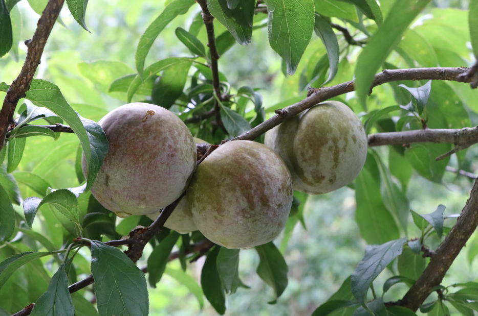 穿行在裹着白霜、绿中透红的果树间,有着近20年种植经验的周先桐说:“村里几乎家家都种三华李。我家果园约100亩,预计产量能有6万斤。”他指着一棵硕果累累的果树欣喜地说:“你看,单这一棵树就能产果约300斤!”