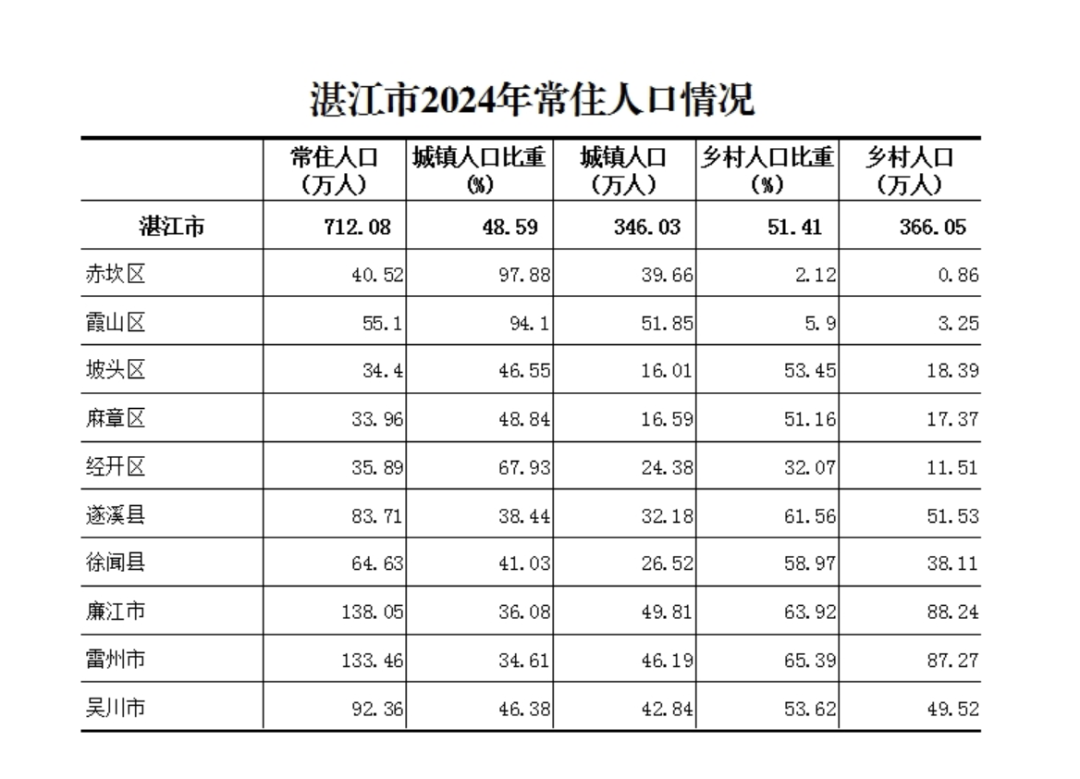 湛江市2024年常住人口情况