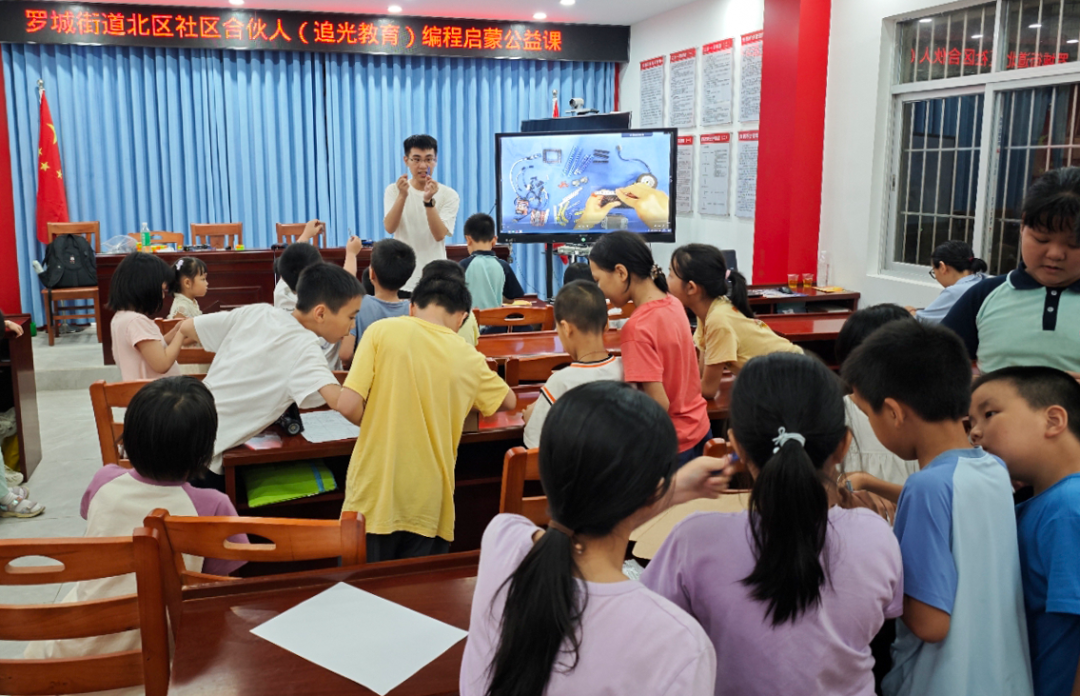 在罗定市委组织部的指导和支持以及罗城街道党工委的统筹协调下,石围社区、北区社区作为广东省第一批村、社区党群服务中心提质行动运营试点社区,积极探索“社区合伙人”机制,创新“阵地换服务”“公益+市场”等模式,整合资源,为居民提供健康养老、儿童与青少年成长、弘扬传统文化、体育建设、科技教育等领域的优质暖心服务,将党群服务中心打造成服务中心、邻里中心、活动中心,有力提升了社会人气和服务品质。“我们追光教育公司与北区、石围社区开展持续和深层的合作,把科技启蒙教育做得更专业、更有趣,进一步扩大普及范围,共同点亮更多孩子的科技梦想。”罗定市追光教育公司负责人黄洪奋表示。