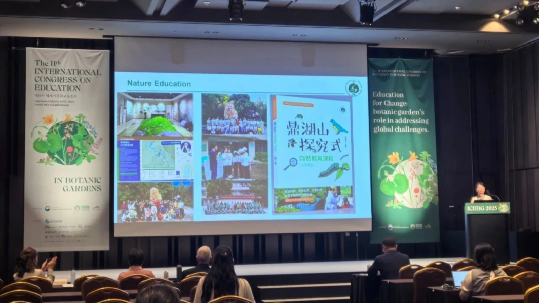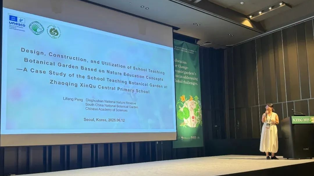 鼎湖山国家级自然保护区科教科科长彭丽芳作为中国代表团成员参加此次国际会议,并在大会上作题为《基于自然教育理念的校园教学植物园的建设、实施和使用——以肇庆新区中学小学为例》的报告,向世界展示了来自新区的教育智慧和方案。
