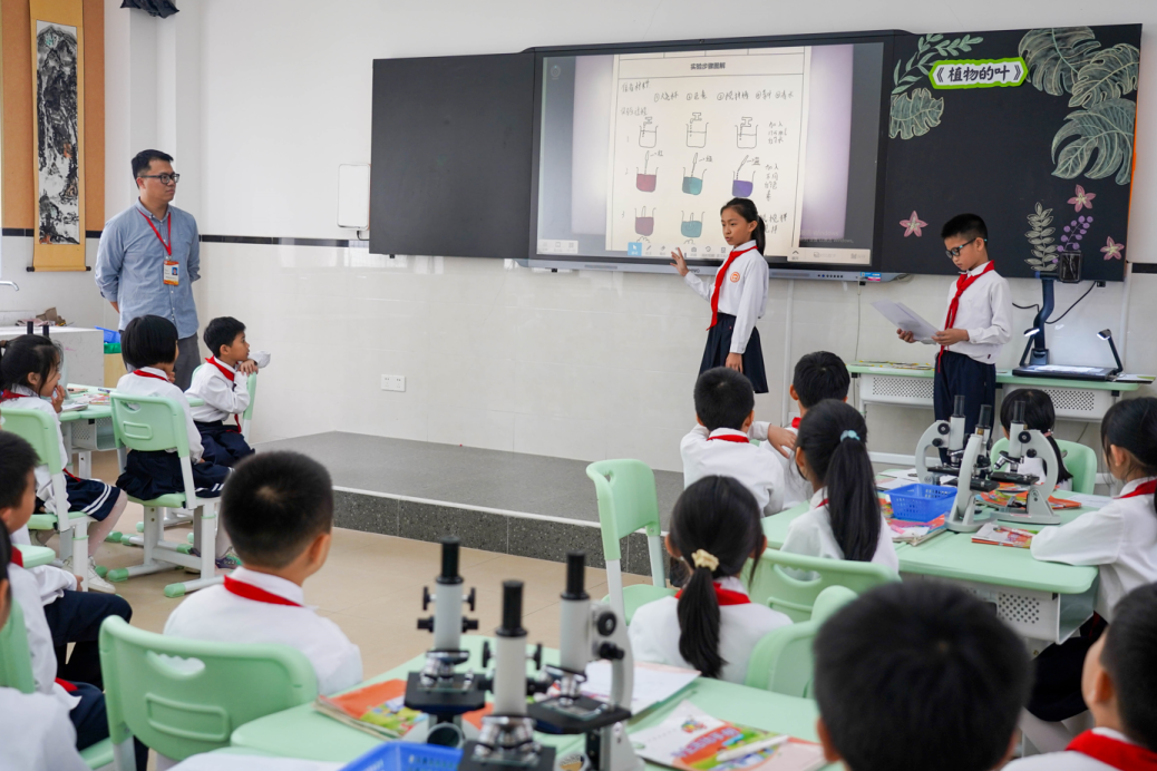 在新区中心小学,学生们的课堂被扩展到了教室外的植物园,课本上的知识走进了现实,不仅让学习变得更有趣,还培养了学生们的探索热情,激发科学思维。