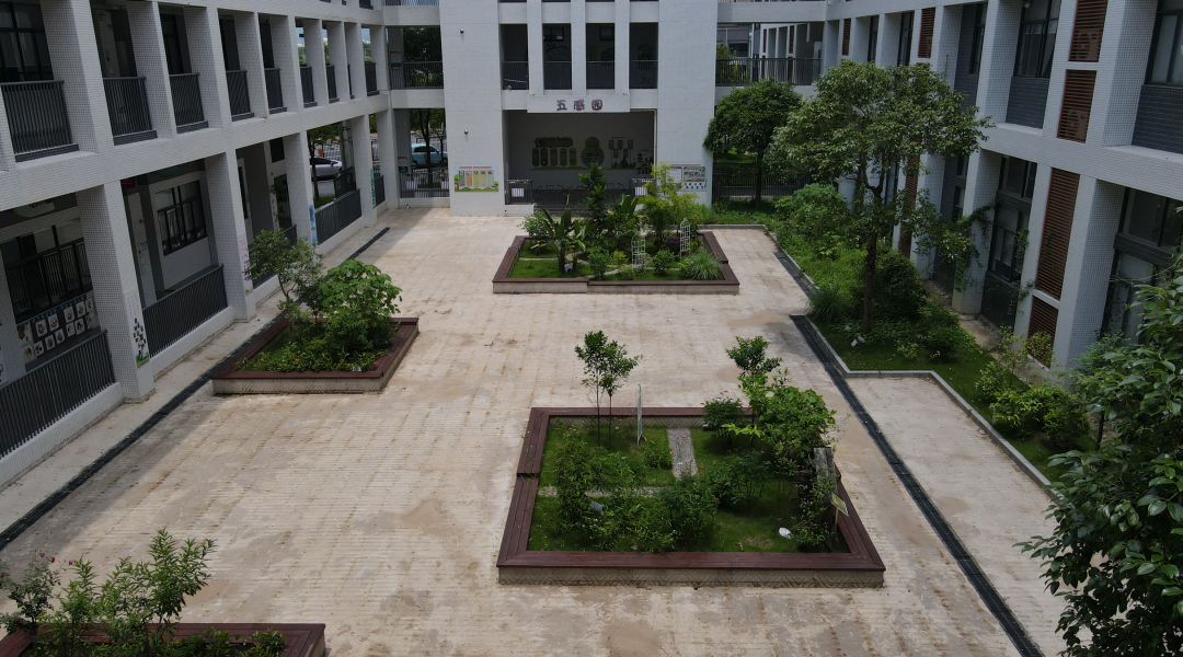 新区中心小学规划建设有“五感园”“小菜园”“月季园”“蝴蝶园”“物候园”“进化园”“鼎湖山原地保护植物园”等植物园,种植有超140种植物,用以引导学生发现、体验、观察、探索。