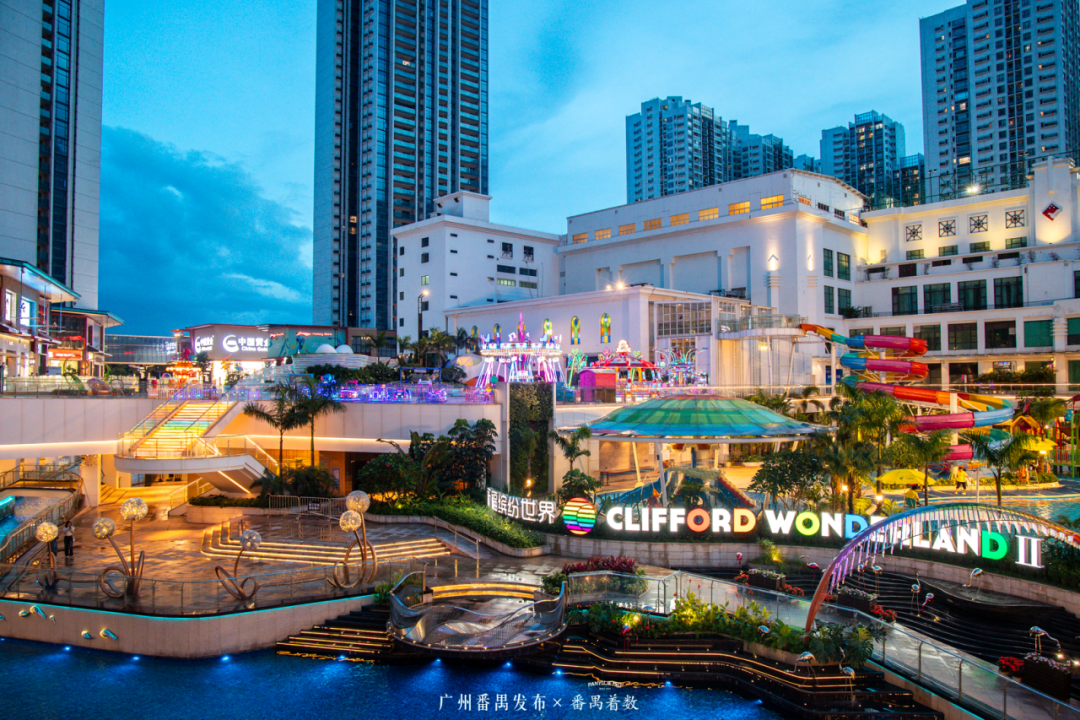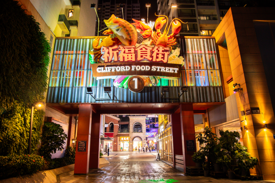 作为广州首批认定的15个都会级羊城夜市先行区之一,祈福缤纷世界商圈每当夜幕降临便焕发出勃勃生机。依托拥有近20万居民的“中国第一邨”——祈福新邨,入夜后的祈福缤纷世界,灯光璀璨,光彩炫目,各式餐厅灯火通明,一条地下“运河”蜿蜒穿过商业区,水波与灯光交织,营造出威尼斯般的浪漫氛围。