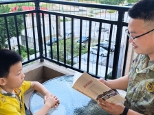 与集体活动的热烈相比,家庭空间更显温情脉脉——爸爸与孩子依偎在沙发,训练场上的坚毅面容此刻化作讲述者的温柔。民兵父亲们不仅讲述着党的历史故事,还结合本镇红色资源深情讲述黄沙坑保卫战中村民冒死为游击队传递情报的壮举、面对屠刀无一人叛变的坚定。父辈迷彩服上的星光与孩子眼中的憧憬交相辉映,革命薪火在万家灯火中静静传递。