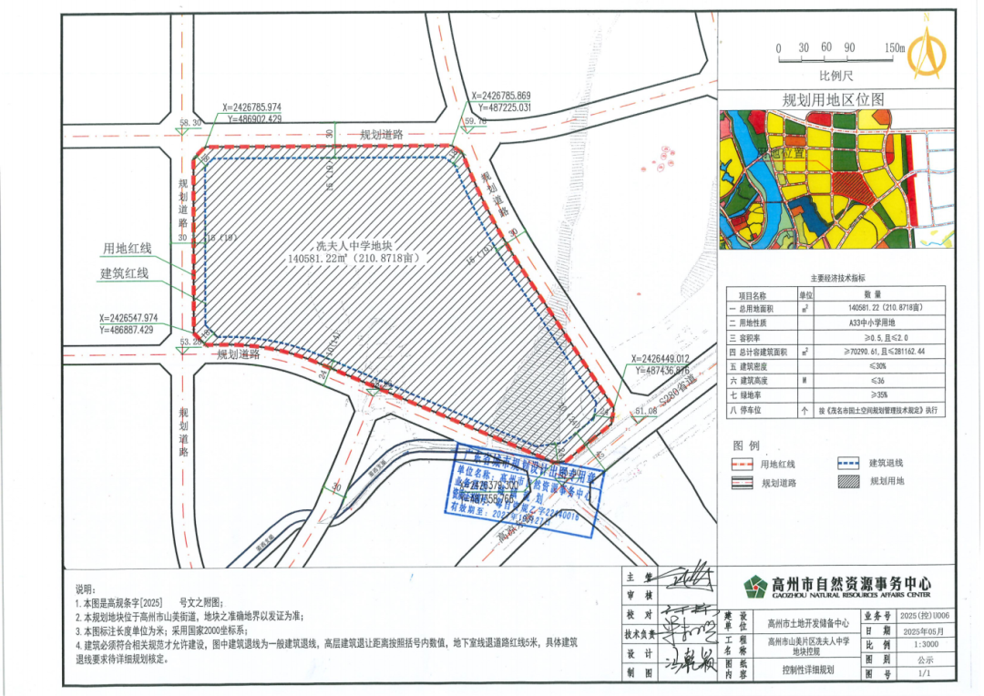 冼夫人中学项目规划用地位于山美街道山美村委会火宵坡村,规划用地面积14万平方米(合210.87亩),拟建教学楼、综合楼、宿舍楼、食堂等校舍,以及配套运动场、校园广场、校门围墙、绿化等设施,规划新增高中学位4500个。