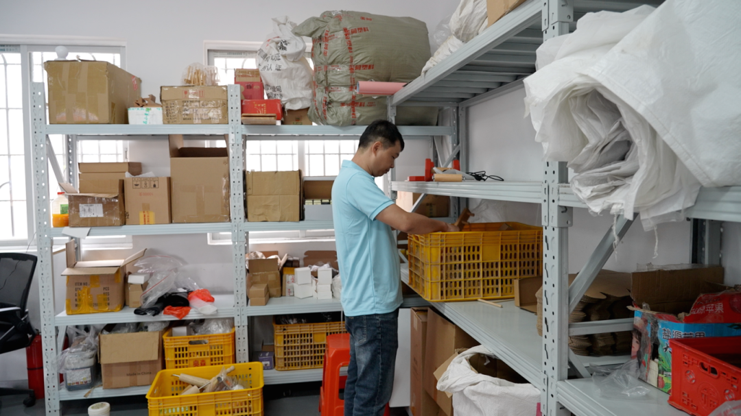 筋斗云(惠州)竹木发展有限公司经理 林谨龙:“我们是做竹木行业的,比如竹木工艺品,还有家具的配件。因为基地提供低成本的办公场所、共享功能室,比如直播室等,极大地降低了我们的运营成本。基地完善的设备和专业的团队为我们打开了线上的销售新窗口,我们可以将当地的竹木制品、工艺品推向全国的市场,实现了销售额数倍增长。”