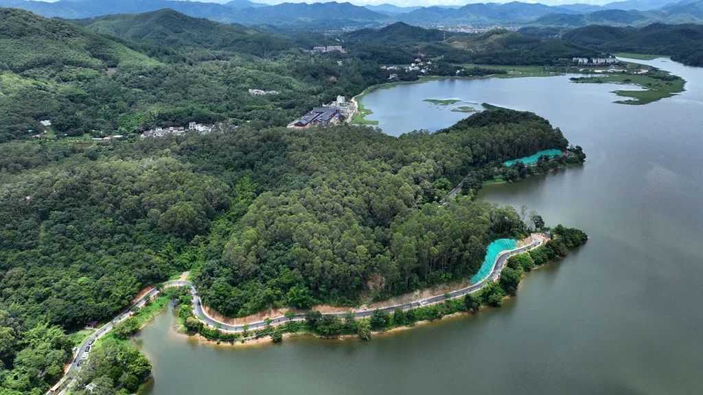 全长约27公里的显岗水库环湖碧道于2024年完成硬底化建设,其中18公里是“环南昆山—罗浮山”县镇村高质量发展引领区最美旅游公路骑行道。蜿蜒的碧道巧妙地将显岗水库的清澈水波与周边的山峦景色相连结,打造出如“小洱海”般的迷人景致。