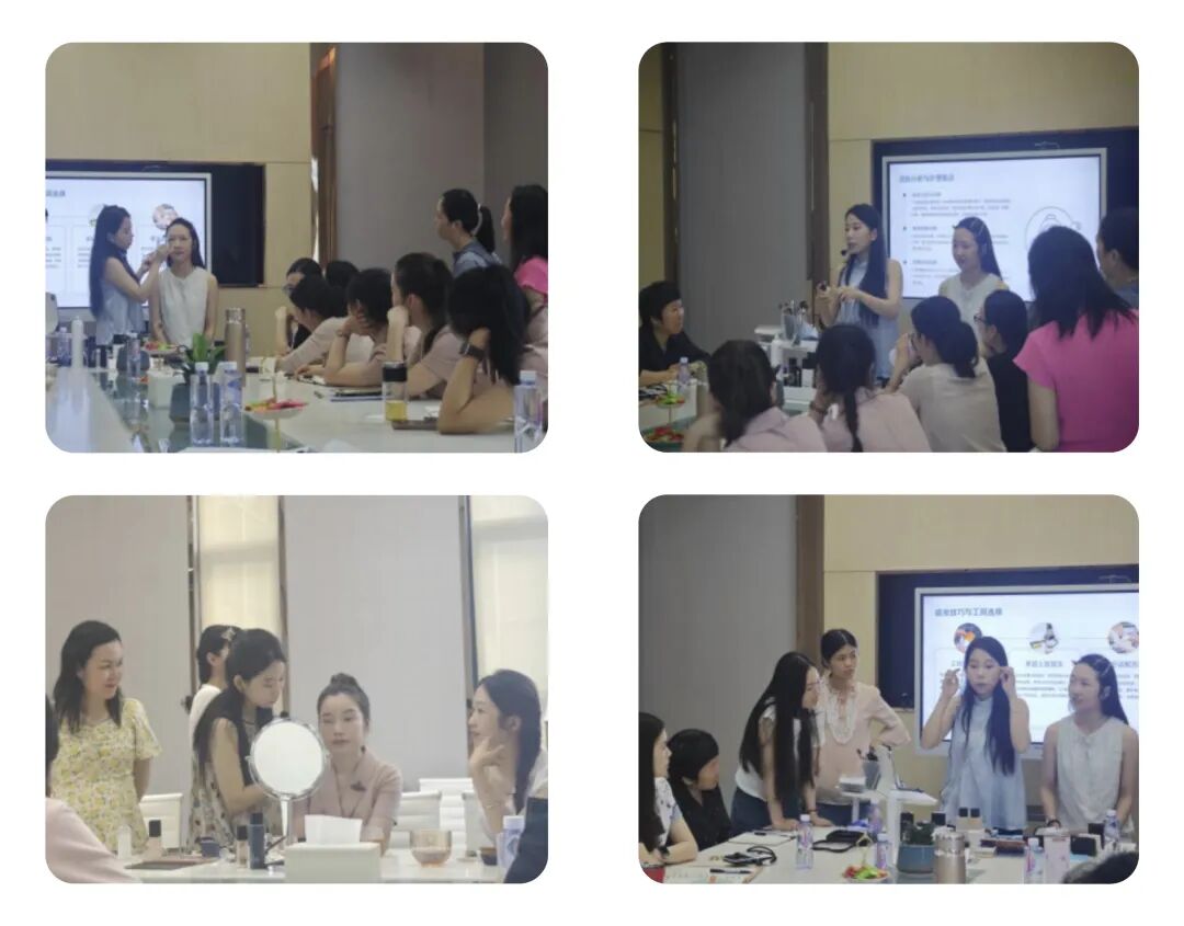 讲师从护肤基础、底妆技巧、眉眼修饰、腮红唇彩搭配等入手,深入浅出地讲解并演示了适合不同场合(通勤、会议、日常社交)的快速、得体妆容画法。重点传授了“提气色”“显精神”“扬长避短”的核心技巧。现场气氛活跃,员工们认真记录、踊跃提问。