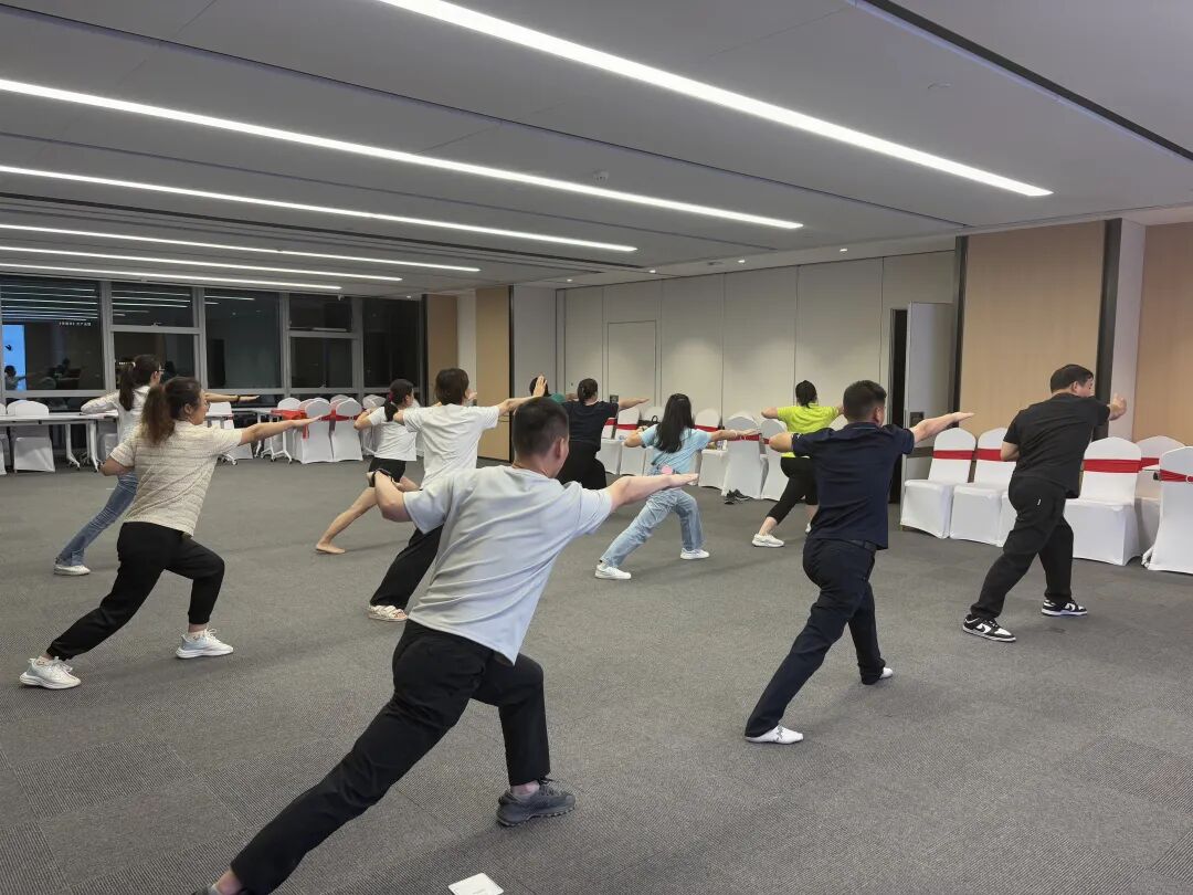 在快节奏的现代职场中,为员工带来了调养身心的传统养生功法,搭建一座将健康理念与技能惠及更广人群的公益桥梁。6月13日、18日伴随着悠扬舒缓的古典乐曲,员工们暂别案牍劳形,开启了身心放松与能量流动的奇妙旅程。